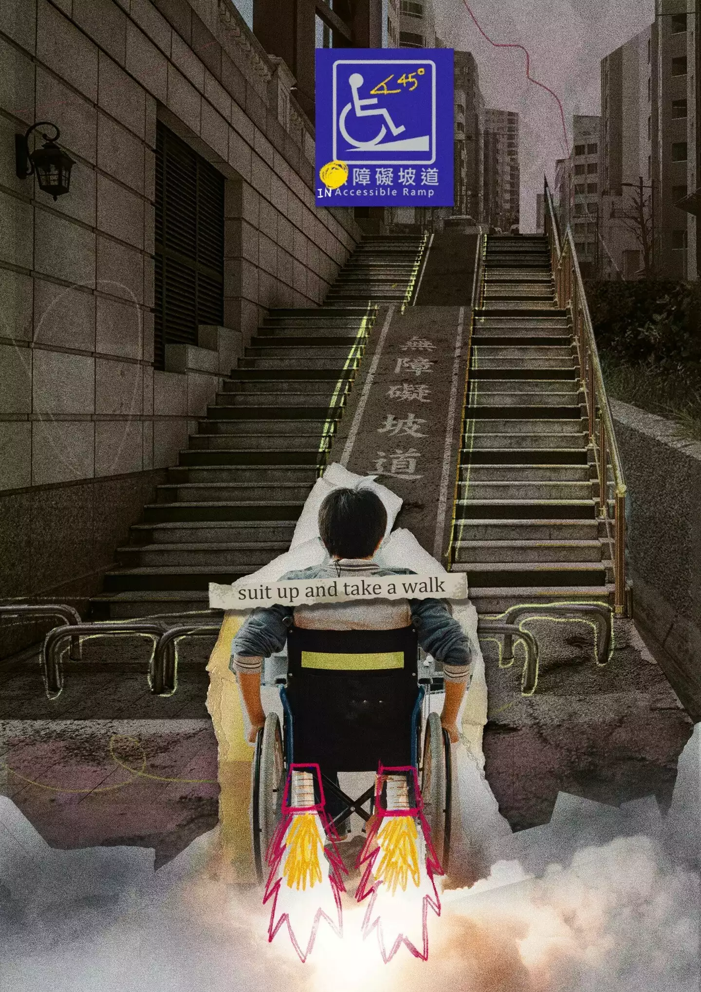 什麼 ? 無障礙設施前面有護欄 ? 那只好改裝成火箭椅了,相信沒有障礙過不去對吧 ?
