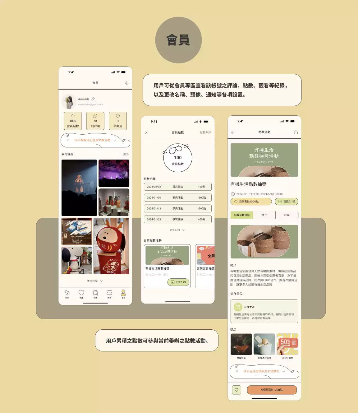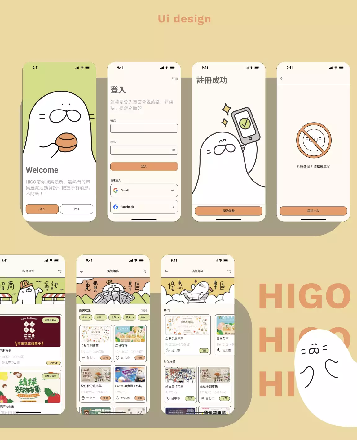HIGO 的介面設計簡潔直觀,使用戶能 迅速找到展覽信息和市集攤位,提高使用的便利性。