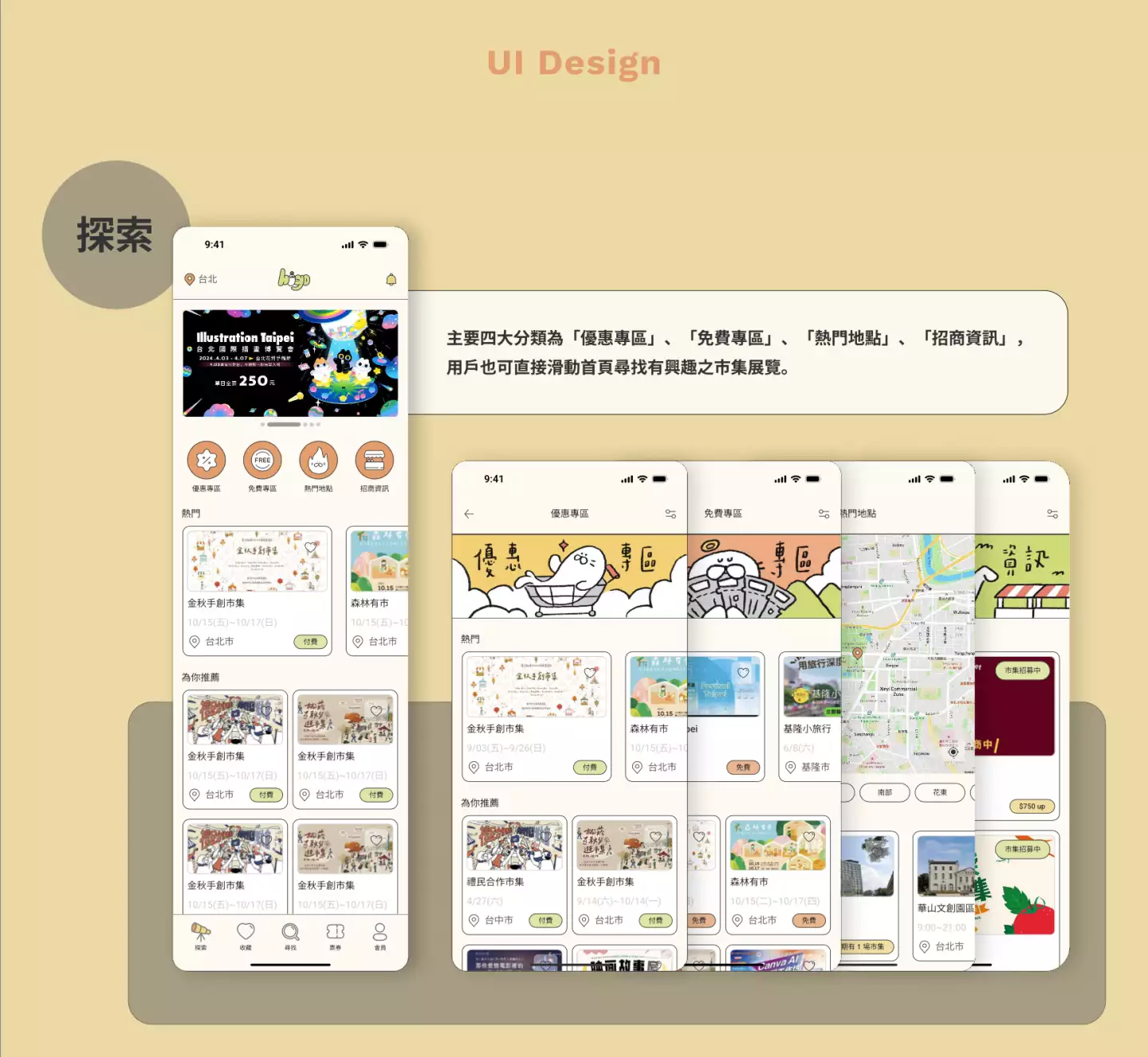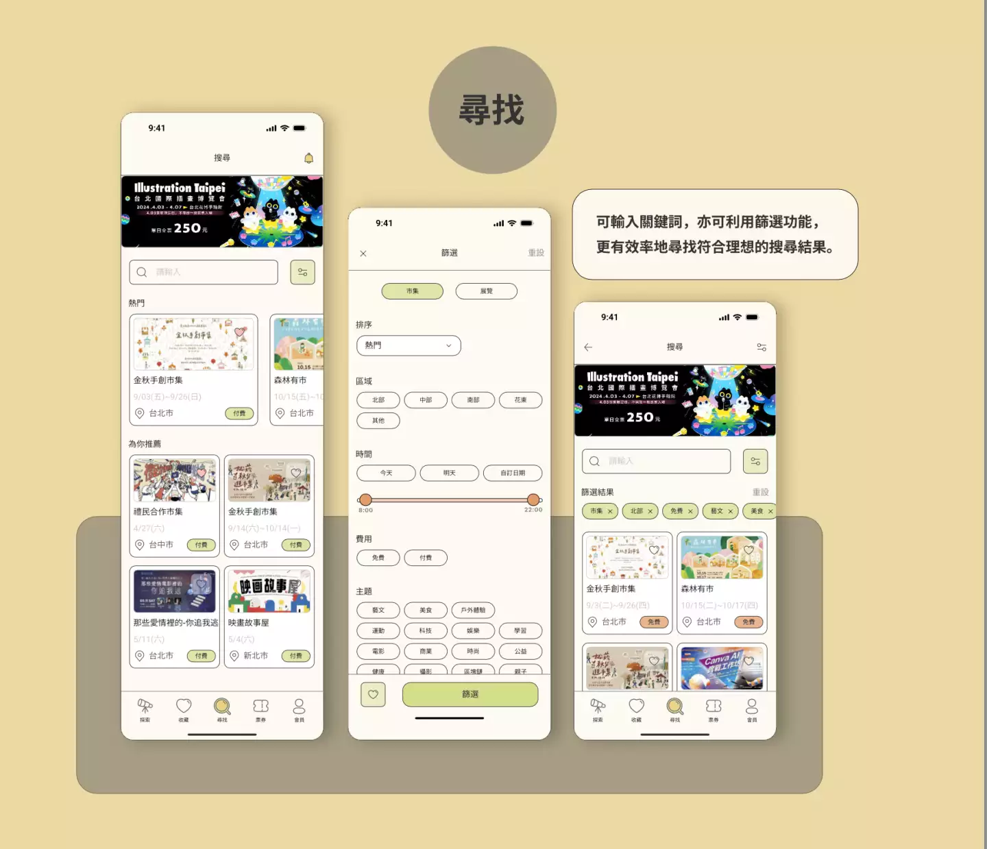 整合眾多功能不僅提升了使用者尋找市集展場的效率,也解決人們在尋找活動資訊的困難,希望能為大家帶來美好的參展體驗。
